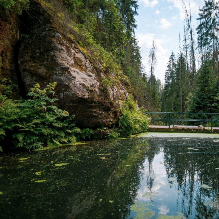 Eingebettet in das wildromantische Kirnitzschtal liegt die Obere Schleuse – ein stiller Ort, an dem die Zeit stehenzubleiben scheint. Umgeben von moosbedeckten Felsen und dichtem Wald gleitet das Wasser gemächlich durch die enge Schlucht. Die traditionellen Kahnfahrten führen Besucher lautlos über den schmalen Stausee und lassen sie die unberührte Natur aus einer ganz neuen Perspektive erleben – geheimnisvoll, still und faszinierend.